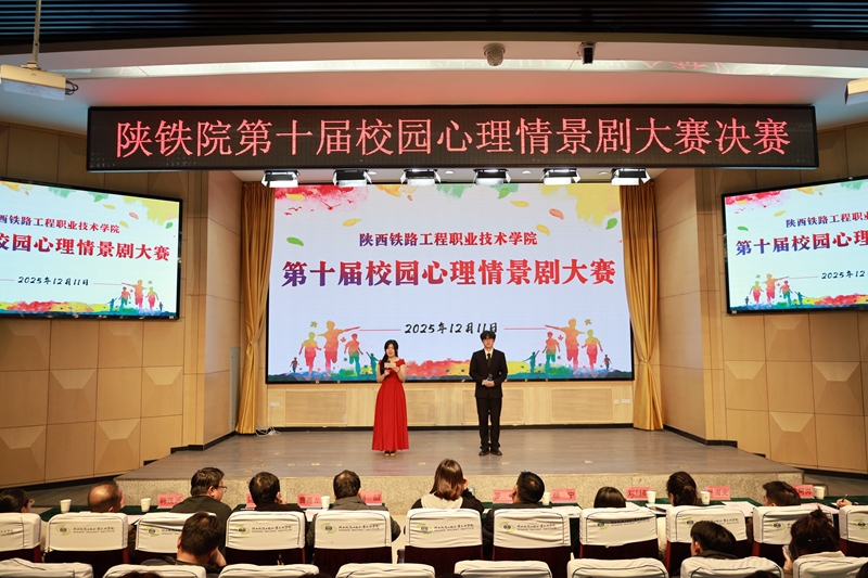 为丰富大学生心理健康教育形式,搭建心灵交流与自我展示的平台,12月11日晚,陕铁院第十届校园心理情景剧大赛决赛在高新校区博爱厅举行。渭南职业技术学院工会副主席(原学工部部长)罗峰、渭南精卫中心心理咨询中心主任赵渭婷、渭南师范学院大学生心理健康教育指导中心副主任杨宁、学校党委组织部部长刘喆、教务处处长刘超群、纪委副书记曹喜龙、发展规划处处长吴海光、基础课部主任韩茂源、学工部部长陈明明、校团委书记陈莎莎,学工部副部长、心理中心主任黄阿岗担任比赛评委。二级学院书记及学生代表等400余人现场观看大赛。 经过前期初赛,有6部主题鲜明、构思新颖的作品脱颖而出,晋级决赛。