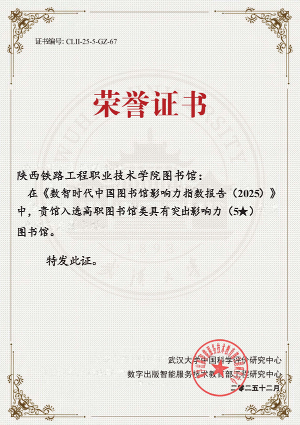 近日,武汉大学中国科学评价研究中心正式发布《数智时代中国图书馆影响力指数报告(2025版)》,学校图书馆凭借扎实的服务成效与综合实力,位列全国高职高专图书馆影响力榜单第67名,较上年度的132名大幅跃升65位,并被授予“五星图书馆”。