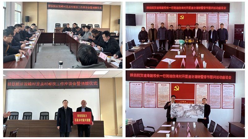2月1日至3日,学校副校长贺建锋带领国有资产管理处、国际合作与交流处、信息化与网络安全处、就业指导中心、乡村振兴办等部门同志,深入石泉县定点帮扶村——曾溪镇油坊湾村、城关镇双嶂村开展乡村振兴走访慰问暨考察调研活动,为困难群众和驻村工作队送去学校的关怀与温暖,共同迎接马年新春。