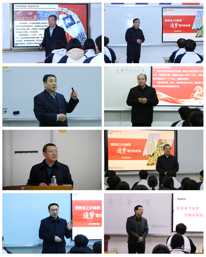 3月2日晚,学校党委书记焦胜军、校长韩小卫等全体校领导带领处科级干部,分别走进各二级学院班级,以“乘势而上开新局 笃行向未来”为主题宣讲“开学第一课”,开展思想政治教育和形势政策教育。