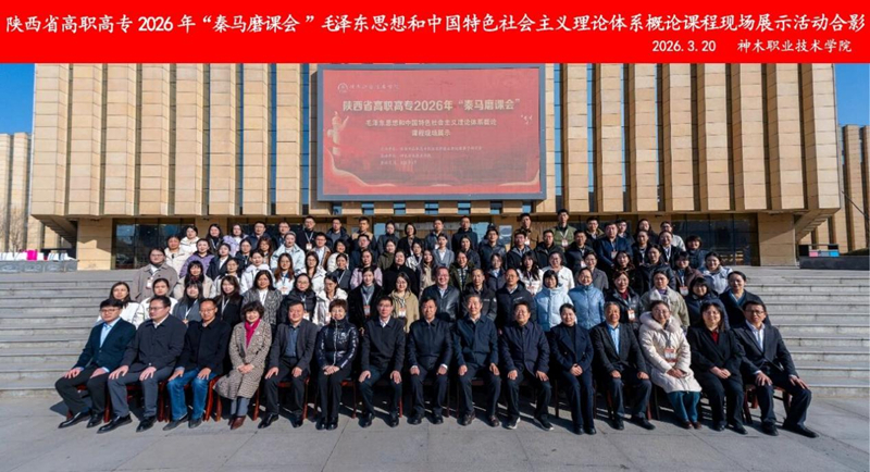 3月20日,由陕西省委教育工委宣传部指导,陕西省高职高专院校思想政治理论课教学研究会主办,神木职业技术学院承办,学校协办的陕西省高职高专2026年“秦马磨课会”《毛泽东思想和中国特色社会主义理论体系概论》课程教学展示活动在神木职业技术学院顺利举行。陕西省高职高专院校思想政治理论课建设联盟会长、学校党委书记焦胜军,神木职业技术学院党委书记艾国、党委副书记李长春、副院长李建法等全省20余所高职高专院校的校领导、马克思主义学院院长、专家评委、参赛教师及神木市中小学教师代表参加开幕式。