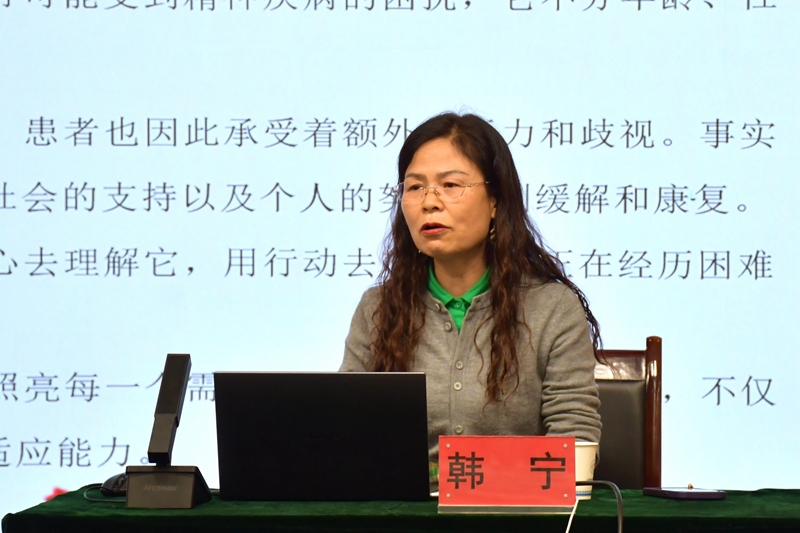 讲座中,韩宁从精神障碍的科学定义入手,结合大量临床案例,系统梳理了抑郁症、焦虑症、强迫症、精神分裂症等常见精神障碍的核心症状、发病机制与发展规律。她特别强调,精神障碍并非个人意志力薄弱的表现,而是需要科学诊断与专业干预的疾病。针对校园高发的学生心理健康问题,韩宁主任重点解读了青少年精神障碍的早期识别指标,分享了危机干预的关键原则与实操方法。